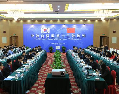 中韩自贸区谈判于2012年5月正式启动。两国领导人已于今年7月初达成共识,将进一步努力在今年年底前完成谈判。