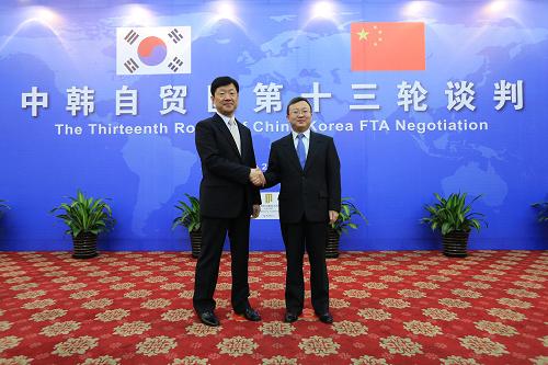 9月22日,中韩自贸区第十三轮谈判在北京举行。中韩自贸区谈判于2012年5月正式启动。谈判大体分为模式谈判和出要价谈判两个阶段。2013年9月,中韩双方完成了模式谈判,确定了基本原则、总体自由化水平和未来协定涉及的范围领域。【详细】