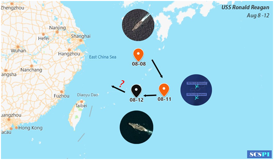 据“南海战略态势感知计划”8月13日发布的消息,8月12日卫星图像显示,美海军航母“里根”号位冲绳以南,正向西航行,即将进入东海。美国太平洋舰队8月12日也发布消息称,8月11日当天“里根”号航母在东海开展了舰载机的相关飞行训练活动。值得注意的一个细节是,当时正值美卫生部长“访台”,“里根”号航母一直在台湾周边机动游弋,被认为意在威慑中国大陆。