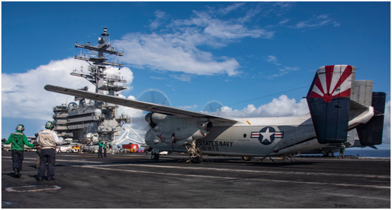 8月13日,美国海军“里根”号航母在菲律宾海出动舰载机训练