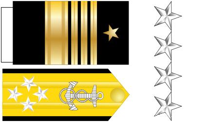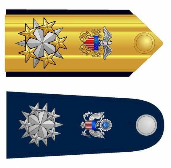 而美国二战时期授予的威名赫赫的五星上将,其实是美军历史上的第三高军衔。美国五星上将肩章上镶有五颗星徽,相当于西方其它国家的元帅军衔。不过,由于美国国会规定,该军衔只在战时授予。因此,目前美军中的最高军衔为四星上将。