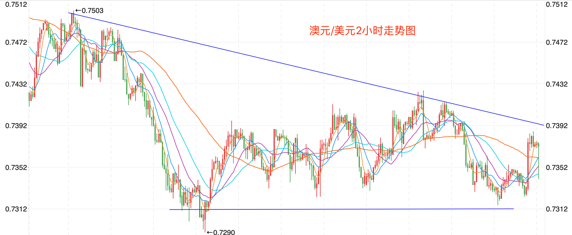 前期自2020年3月底企稳0.56618低点开启上涨走势;盘中突破了MA200均线的关键阻力而上行走高;2021年2月触及0.80072点高位后开始震荡走低。当前行情有探底反弹延续向上的震荡走势。