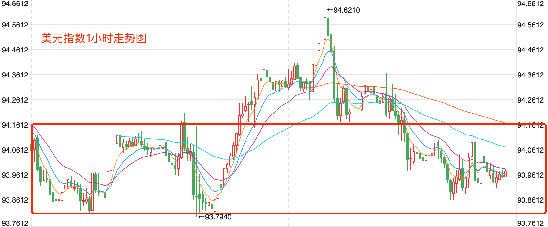 前期持续上涨创出102.99点的高位后一路震荡回落走低,触及89.206点的低位后,开始向上持续震荡走高;整体价格在MA200上方运行。中期走势继续保持震荡向上的走势,价格突破93点的关键阻力后打开上行空间。当前短线行情有调整的趋势。
