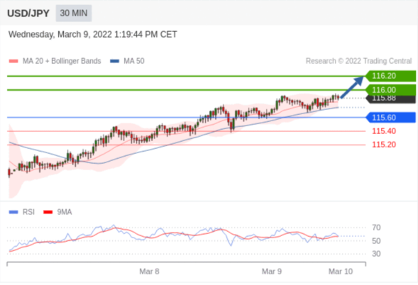在 115.60 之上,看涨,目标价位为 116.00 ,然后为 116.20 。