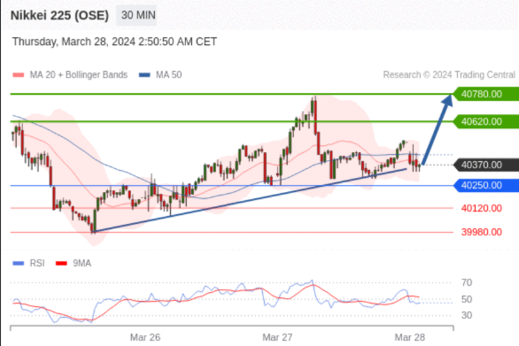 交易策略: 在 40250.00 之上,看涨,目标价位为 40620.00 ,然后为 40780.00 。