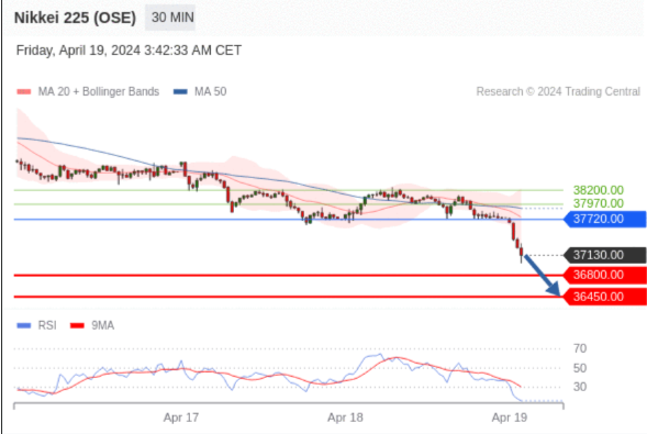 交易策略: 在 37720.00 之下,看跌,目标价位为 36800.00 ,然后为 36450.00 。